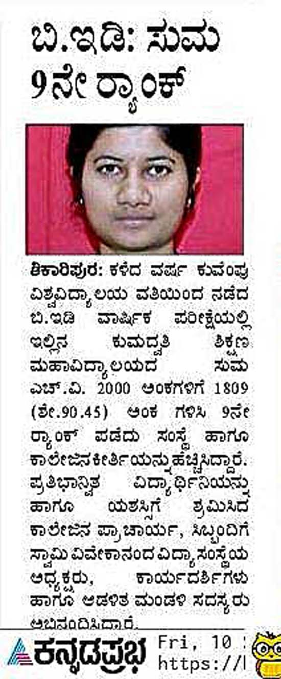 > ಬಿ.ಇಡಿ: ಸುಮ 9ನೇ ರ್ಯಾಂಕ್