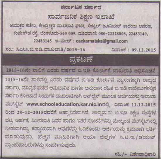Admission Notification 2015-16
