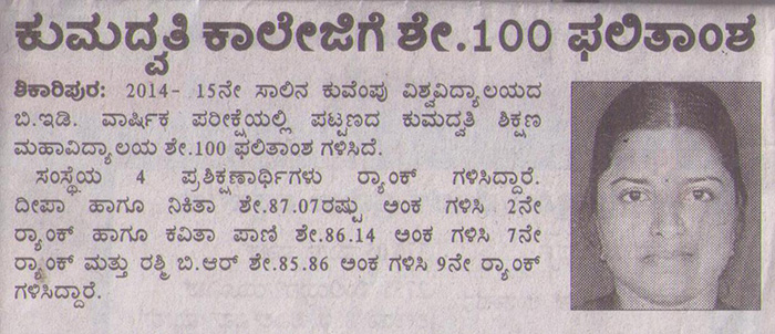 Kannada Prabha 21.06.2016 B.Ed Rank 2016